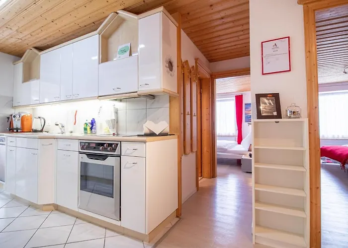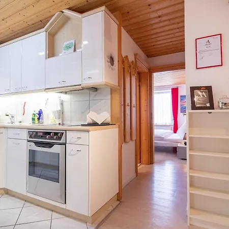 Geniet van een ingerichte kitchenette in Haus Padrun 8 Appartement met een koffie/theezetapparaat, een oven en keukengerei voor uw gemak. Het treinstation Arosa bevindt zich op een paar stappen verwijderd van deze accommodatie.